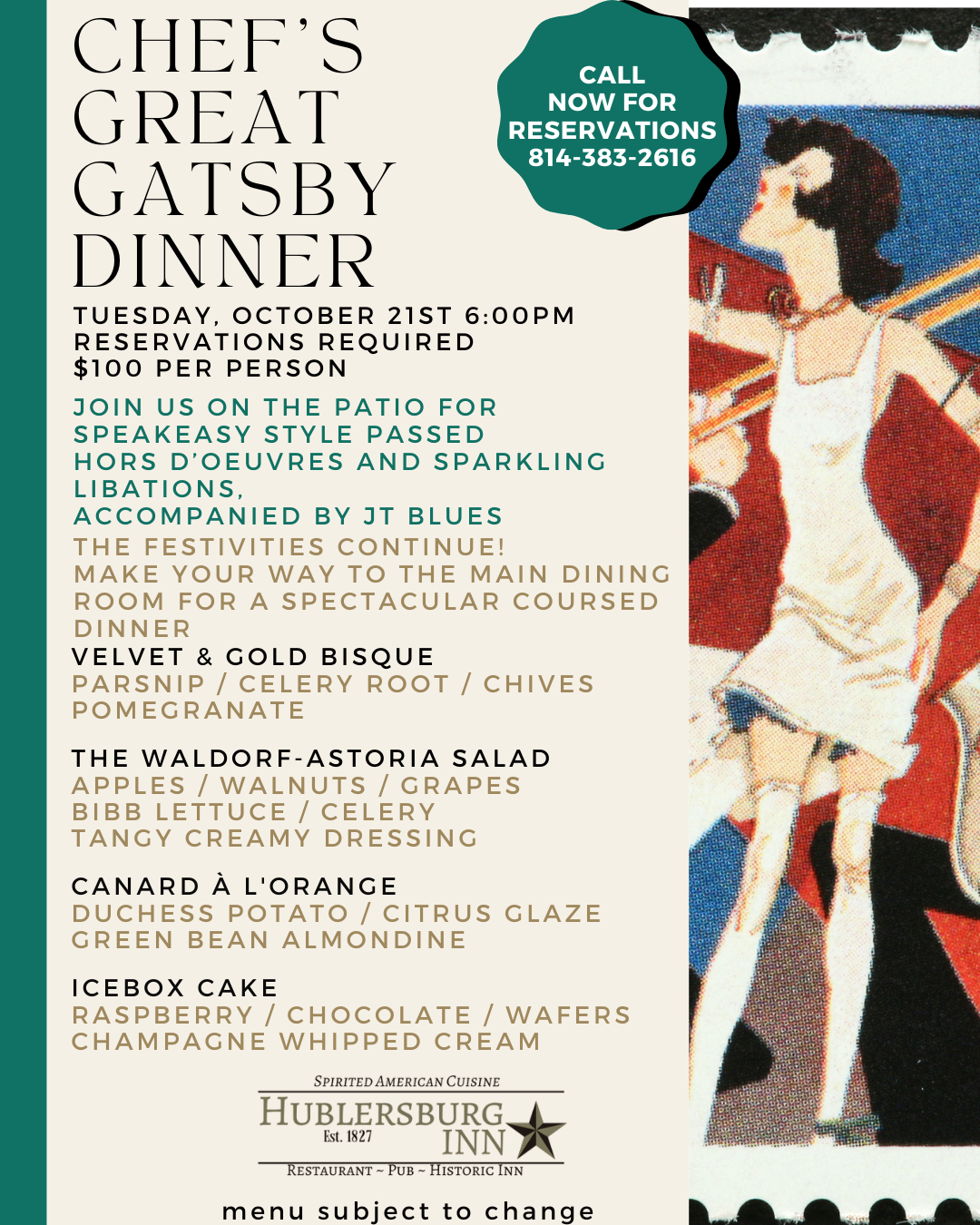All Chef's Dinners require reservations!
